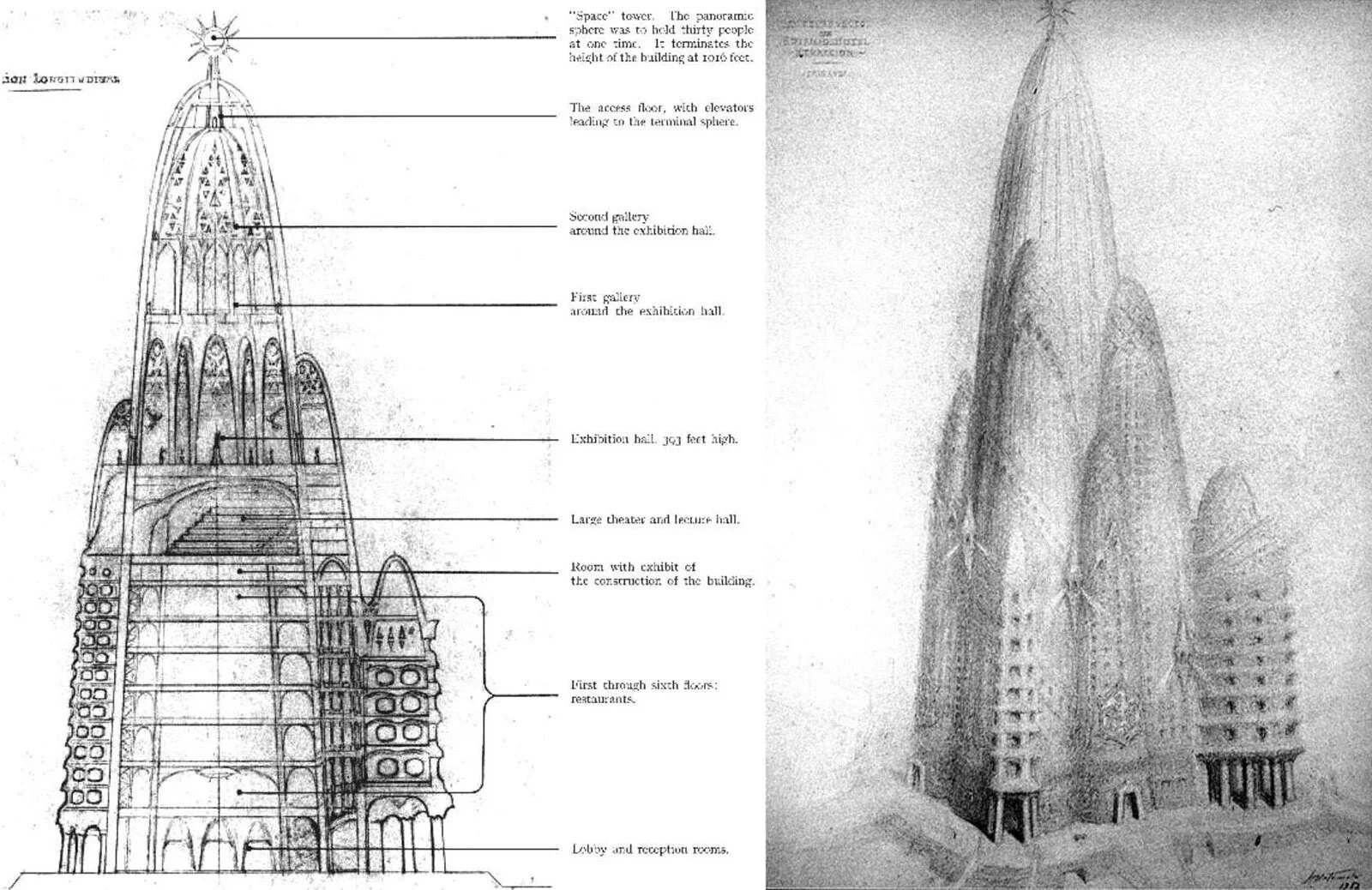 I never knew this, but learned that he actually planned a skyscraper in NYC. It was supposed to look like this.