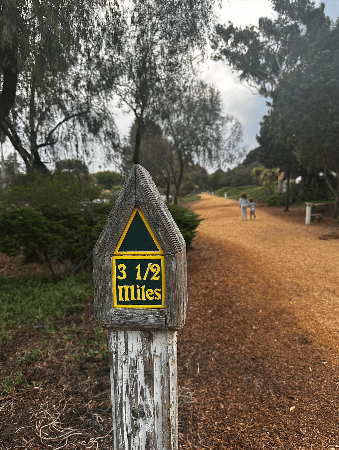 One of my favorite trails is Veteran's Parkway through Manhattan Beach. First of all, it's mulched, which feels great underfoot. Second, the trail runs through a kind of valley in one of the nicest neighborhoods in the world, and one of the stops is a few blocks up Manhattan Beach Blvd, which runs right down to the pier.