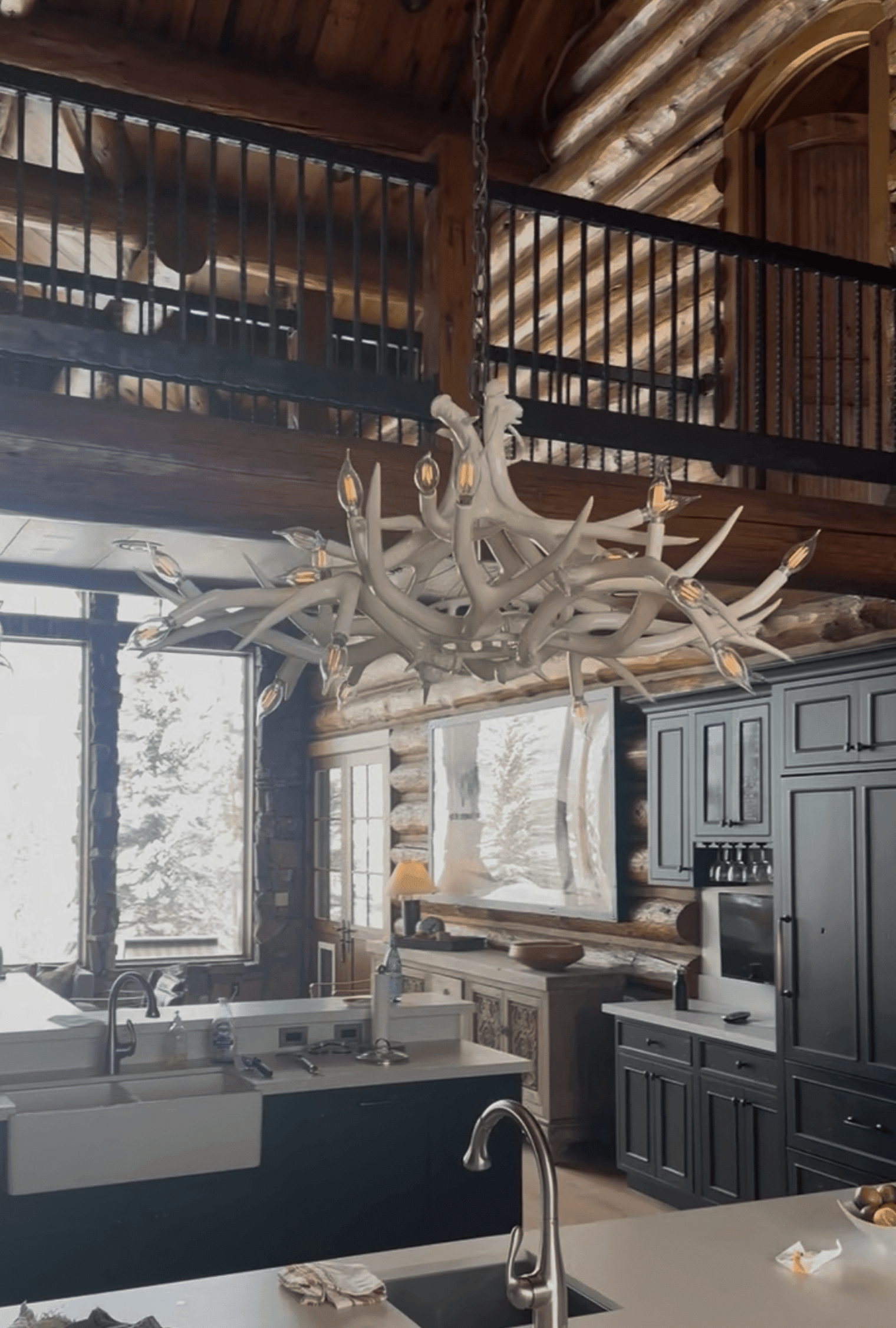 pizza & antler chandeliers