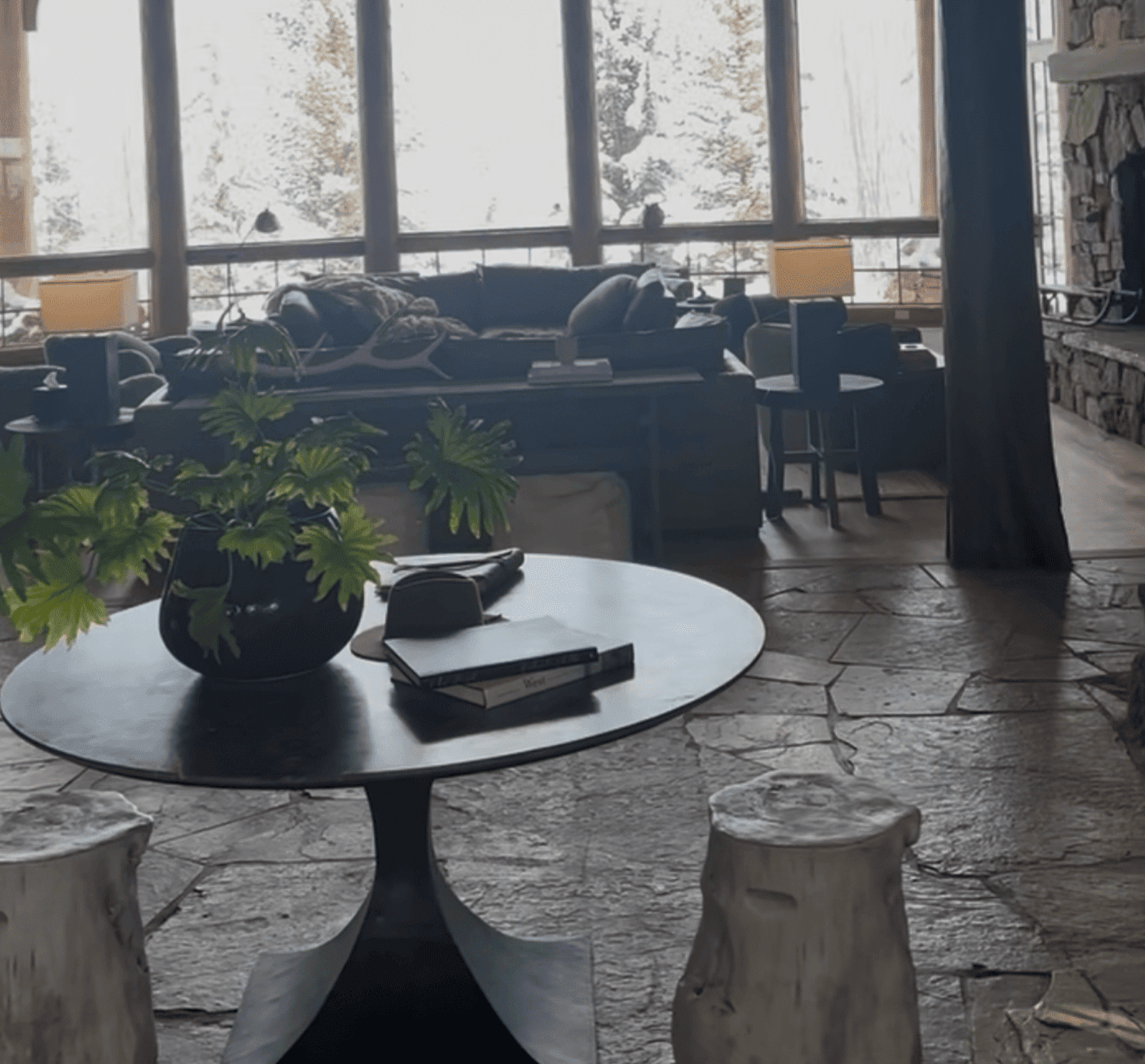 Aside from the huge windows and views, one thing I really liked was the flagstone floors as soon as you walk in the front door.