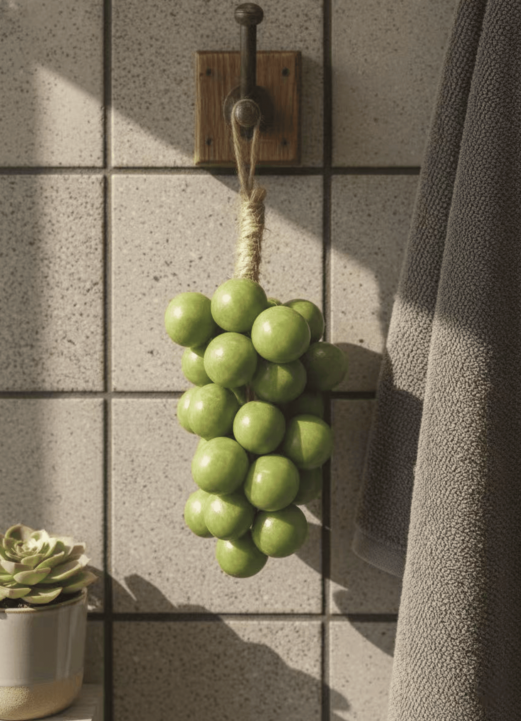 I found these natural soap grapes from PFP and think this could be a great alternative hanging next to a sink. Bravo for creativity.