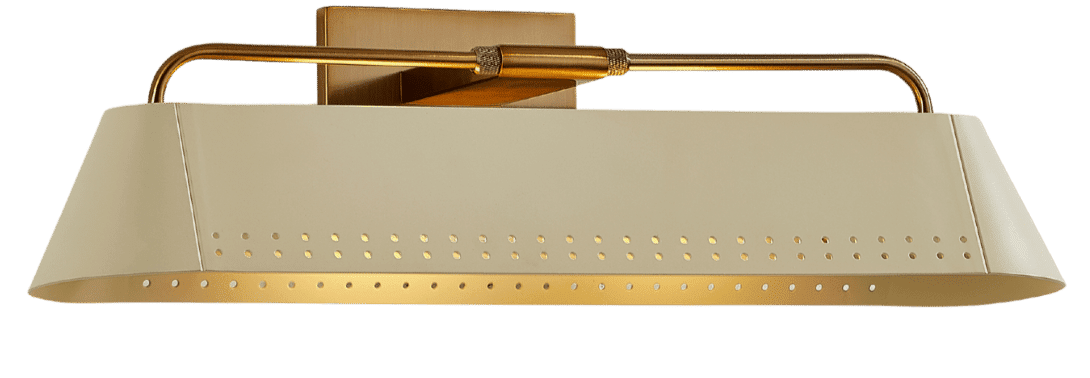 The ambiance of a picture light in a home is gorgeous. Something like the Rowan has just the right amount of interest and would work anywhere. I like the cream shade with the holes in it and contrasting hardware.