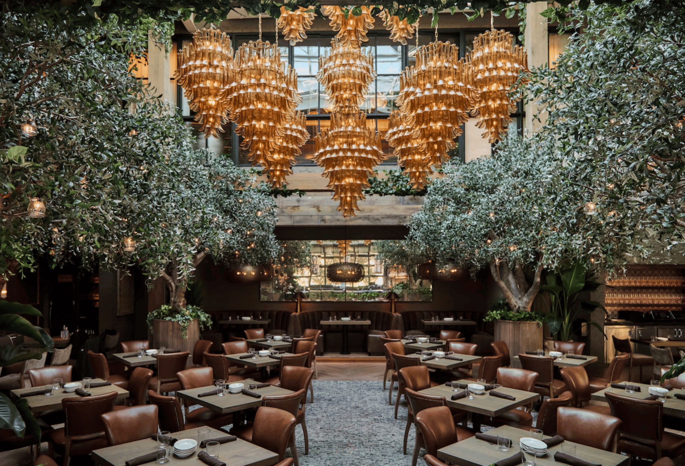 They do string lights tucked into their trees rather than "stringing" them, which is a sharp look, and there were many huge plants in large planters all over the sprawling restaurant.
