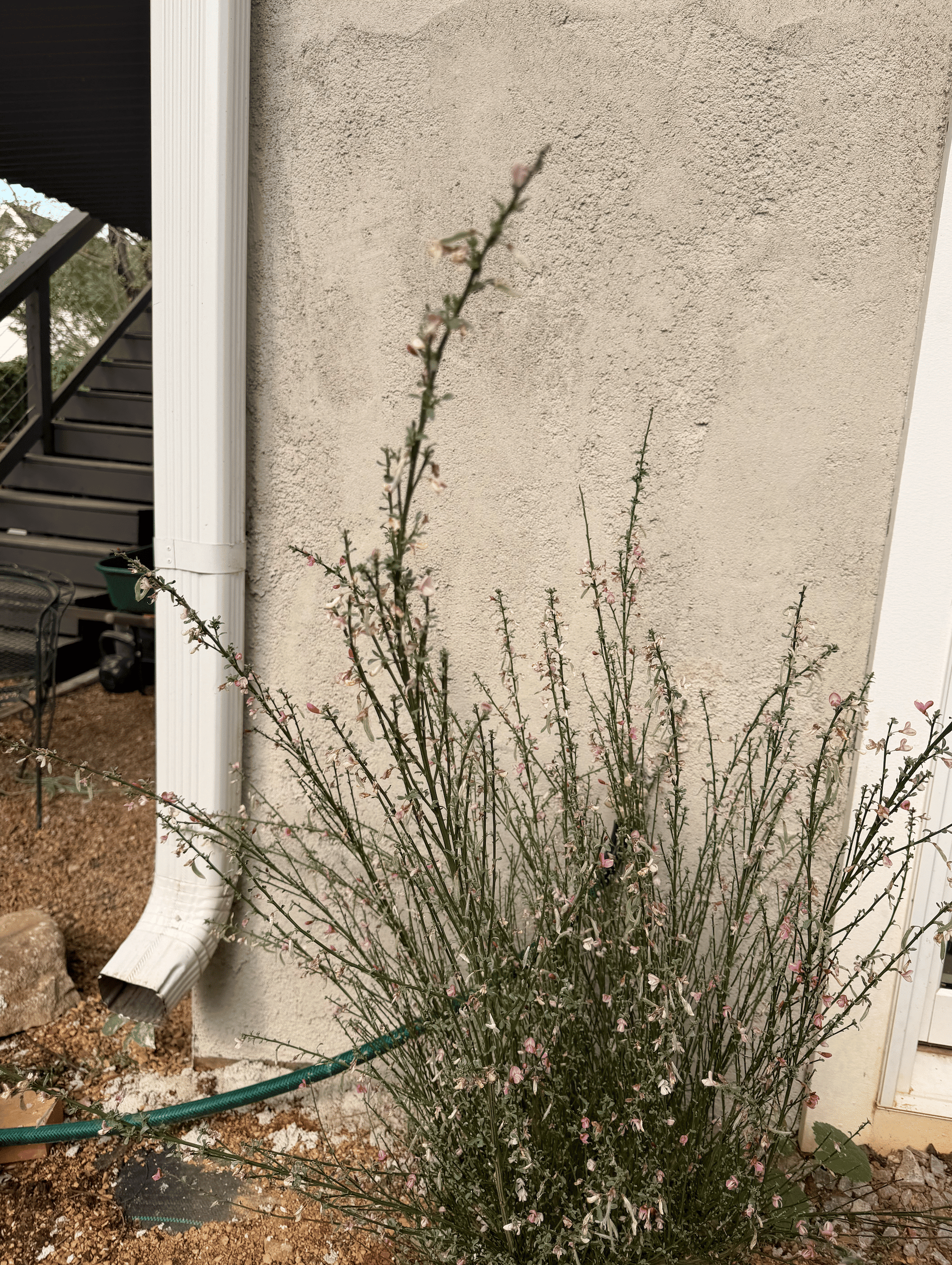 It's wild the impact this makes; the back of our house feels so much more finished. It's also gone from being painted charcoal block to now textured concrete, so it's much lighter and more inviting. Something about stucco reads very "courtyard" to me, which is exactly what we are going for.
