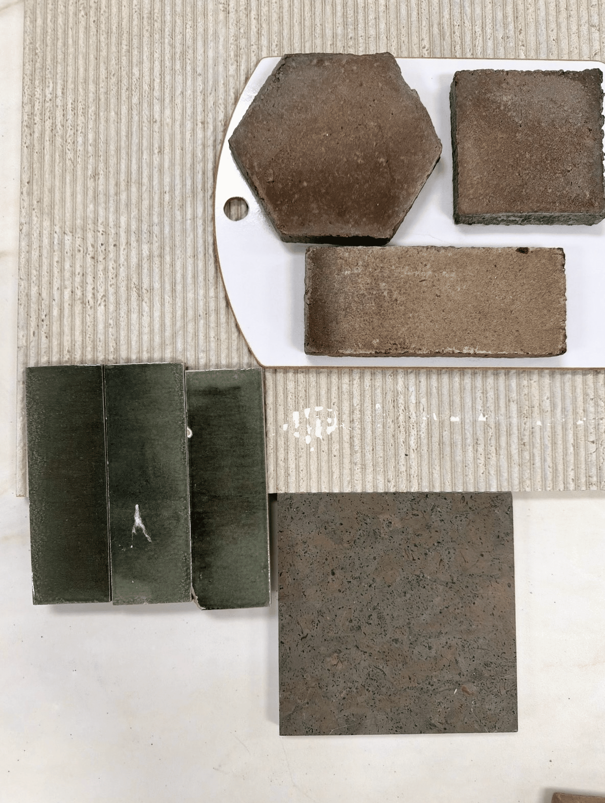 Some of the tile selections, we're doing big swaths of floors and walls in tonal textural tile. The color palette will be very tight, moody earth tones.